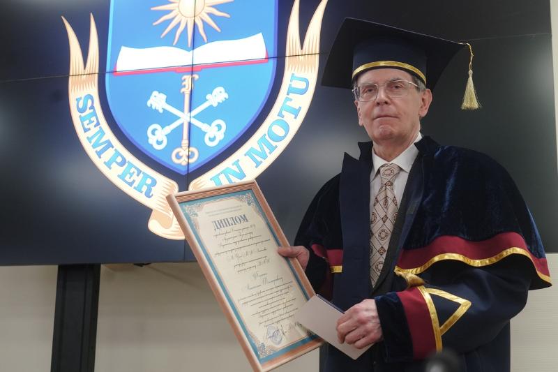 26 января в конференц-зале Главного корпуса ВГУ состоялась торжественная церемония присвоения звания «Почётный доктор Воронежского государственного университета» и вручение нагрудного знака «За заслуги перед ВГУ» заведующему кафедрой дифференциальной геометрии и приложений МГУ им. М.В. Ломоносова, доктору физико-математических наук, профессору, академику РАН Анатолию Фоменко.
