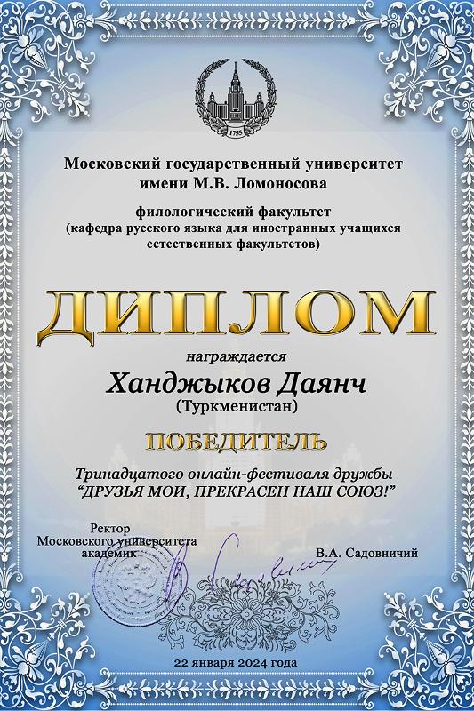 Воронежский государственный университет представлял студент 1 курса филологического факультета Даянч Ханджыков из Туркменистана. Даянч исполнил романс «Я помню чудное мгновенье…» и стал победителем фестиваля.