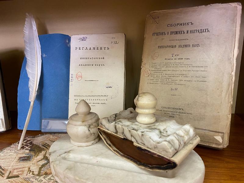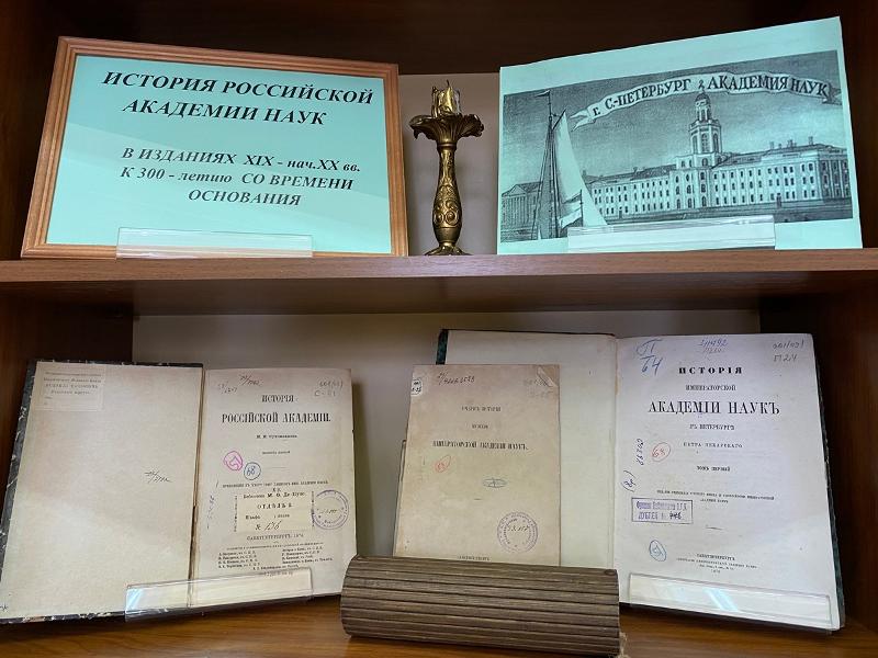 В отделе редких книг открыта выставка, посвящённая знаменательной дате. Центральное место занимают книги, изданные в начале 19 века. Среди них – посвящённые проблемам русского литературного языка «Сочинения и переводы, издаваемые Императорскою Российскою Академиею» (Санкт-Петербург, 1806 год) и «Регламент Императорской Академии наук» (Санкт-Петербург, 1803 год) – второй по счёту принятый устав Академии наук, подписанный императором Александром I и министром просвещения графом Петром Завадовским. В нём регламентирована деятельность АН, объявлен порядок принятия в её члены, объяснены обязанности всех служащих в Академии на разных должностях.