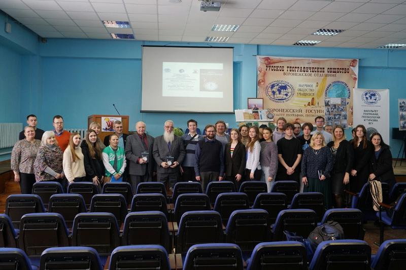 Встреча была организована руководством факультета и Воронежским областным отделением Русского географического общества. Главным ведущим и оратором выступил Николай Сапелкин – член регионального совета Воронежского областного отделения РГО, известный в регионе общественный деятель, путешественник и издатель. Именно он обеспечил выход в свет этого уникального и оригинального печатного труда.
