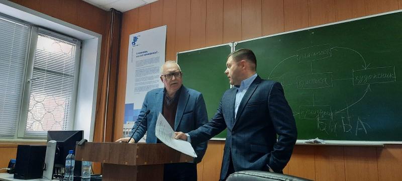Факультет журналистики совместно с Координационным центром организовал лекцию для студентов, посвященную борьбе с фейками. Спикером выступили: декан Владимир Тулупов и специалист координационного центра Виктор Сливкин.