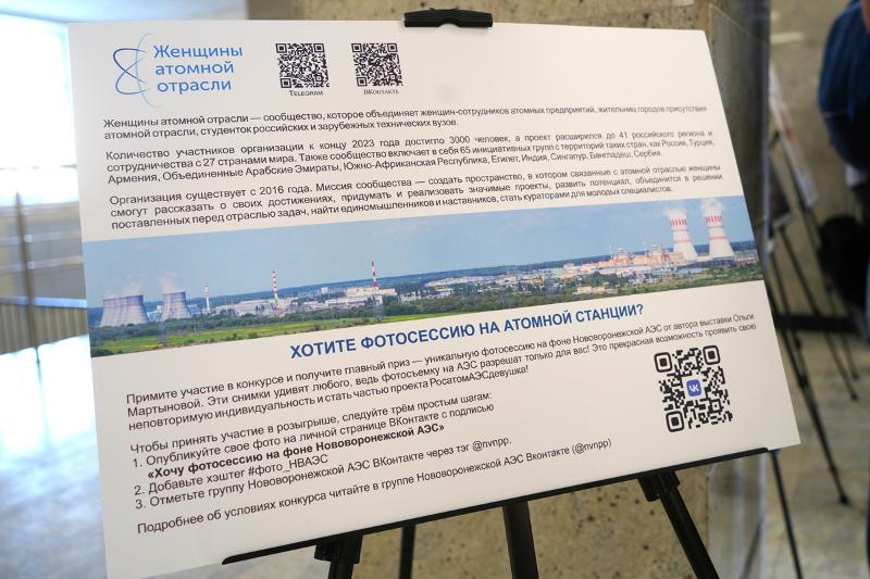Ольга запечатлела красоту 12 женщин-сотрудниц Нововоронежской АЭС на фоне родного предприятия. Фотограф делала снимки каждый месяц на протяжении года, в итоге у неё получился своего рода атомный календарь с представительницами прекрасного пола. На всех фотографиях размещен QR-код, отсканировав который можно ознакомиться с уникальными историями героинь фотовыставки.