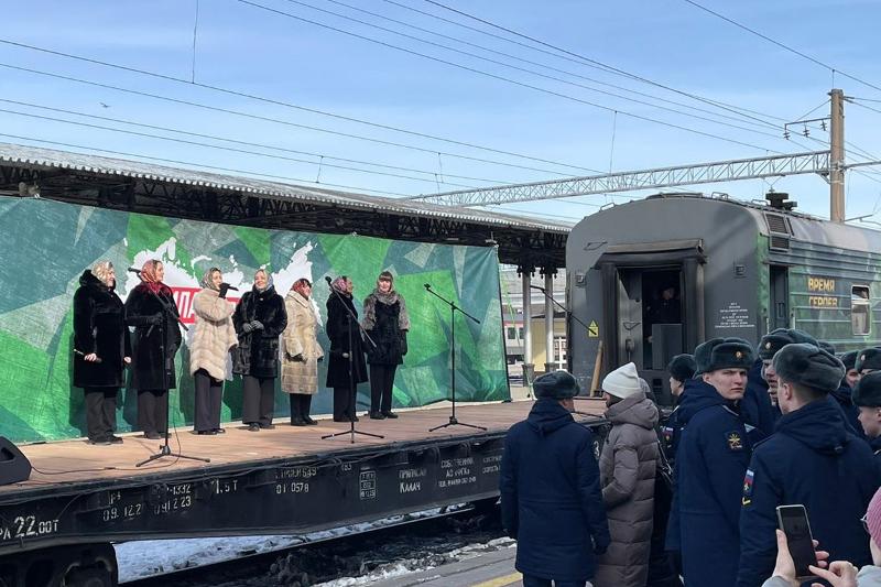 С 23 февраля за 75 дней уникальный поезд посетит крупные города страны и закончит свое путешествие 8 мая в Москве. Акция Министерства обороны России направлена на поддержку военнослужащих – участников специальной военной операции. Девять вагонов поезда посвящены героизму российских военных, начиная со времён Великой Отечественной войны и до наших дней. В поезде размещены образцы вооружения и военной техники армии России.