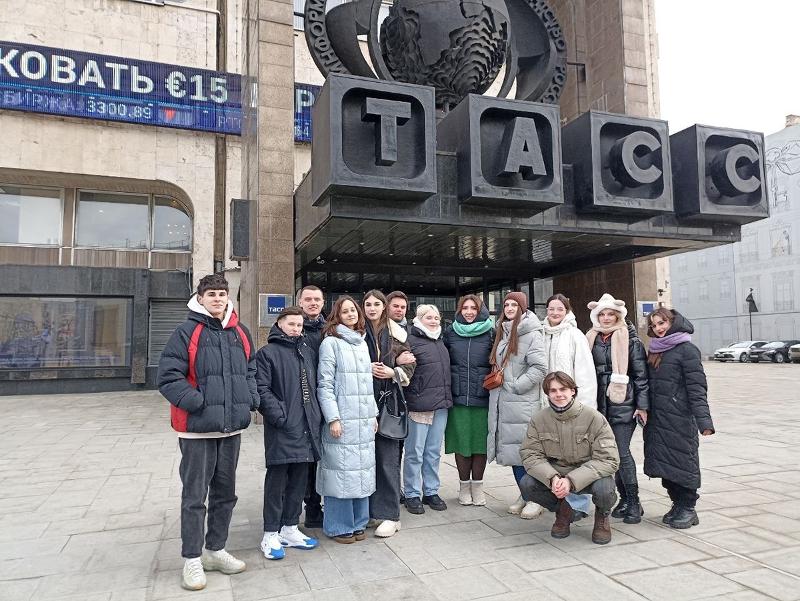 – Это путешествие в Москву запомнится нам надолго. Мы случайно попали на пресс-конференцию в главном информационном агентстве страны. Впечатления от поездки просто прекрасные: мы провели очень насыщенные два дня. Мы сходили на экскурсию в «ТАСС», где увидели, как работает крупнейшая редакция. Наверное, самая запоминающаяся часть – мини-музей, посвящённый творчеству фотожурналиста Владимира Мусаэльяна. Кроме того, нам удалось побывать в Государственной Думе и встретиться с Алексеем Гордеевым – бывшим губернатором Воронежской области. Он сказал, что скучает по нашему городу, и это очень растрогало нас, — поделилась студентка второго курса специальности «Военная журналистика» Кабира Гасанова.