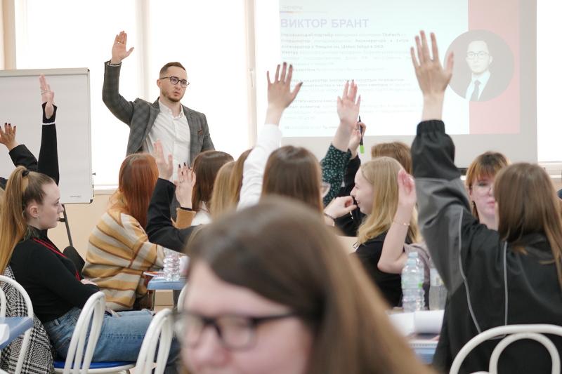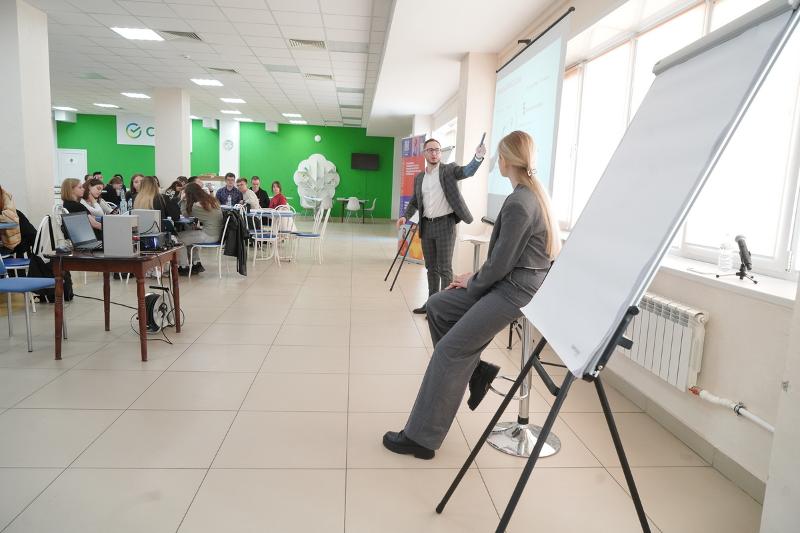 Тренинг предпринимательских компетенций прошёл в формате деловой игры. Студенты погрузились в мир генерации идей, поиска решений конкретных кейсов, разработанных в кооперации с индустриальными партнёрами федерального проекта.