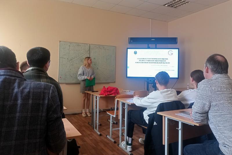 Студенты выступили на секционных заседаниях со своими наработками. В секции «География населения и социально-демографические процессы» были заслушаны доклады: Таисии Ахлестовой – «Сельское расселение Рязанской области: тенденции и географические особенности»; Софьи Костиной – «Социально-географическая оценка распространения заболеваний алкоголизмом в Воронежской области». В секции «Политическая география и социально-экономическая география зарубежных стран» были заслушаны доклады: Алины Емельяновой – «Тенденции социально-экономического развития Южной Осетии в период 2008–2023 гг.»; Арины Ефремовой – «Демографические процессы в Арабской Республике Египет: тенденции и территориальные различия».