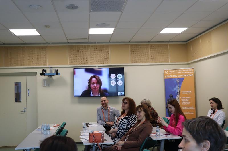 Директор Центра подготовки управленческих кадров, доцент кафедры экономики и управления организациями, доцент Бизнес-школы Галина Меняйло и преподаватель Бизнес-школы Мария Костянская представили свой доклад «Актуальные вопросы и траектория развития бизнес-образования», в ходе которого поделились опытом Бизнес-школы и Центра подготовки управленческих кадров. Спикеры рассказали, как новые форматы обучения и ориентация на потребности слушателя меняют образовательные программы школ бизнеса и какие нововведения позволят оставаться в тренде потребностей рынка.