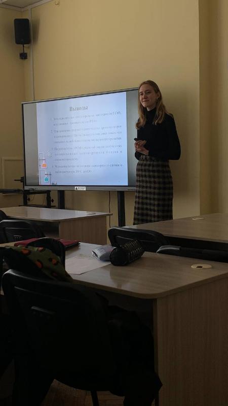 Студенты представили свои доклады на темы «Состав и структура нанокристаллического хромита иттрия, легированного ионами марганца» и «Исследование газочувствительных свойств хромита лантана, допированного ионами стронция». Научным руководителем выступил доктор химических наук ВГУ Виктор Кострюков.