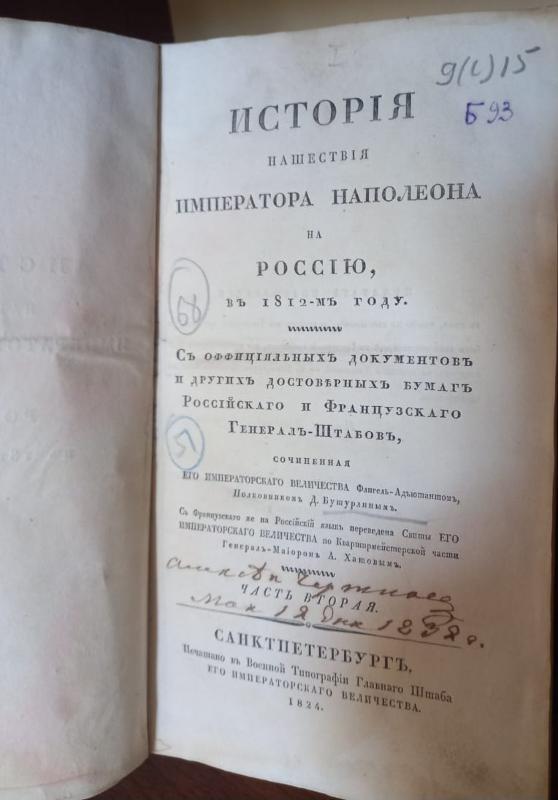В основу труда Дмитрия Бутурлина «История нашествия императора Наполеона на Россию в 1812 году» (Санкт-Петербург, 1824 год) положены архивные документы генеральных штабов русской и французской армий.