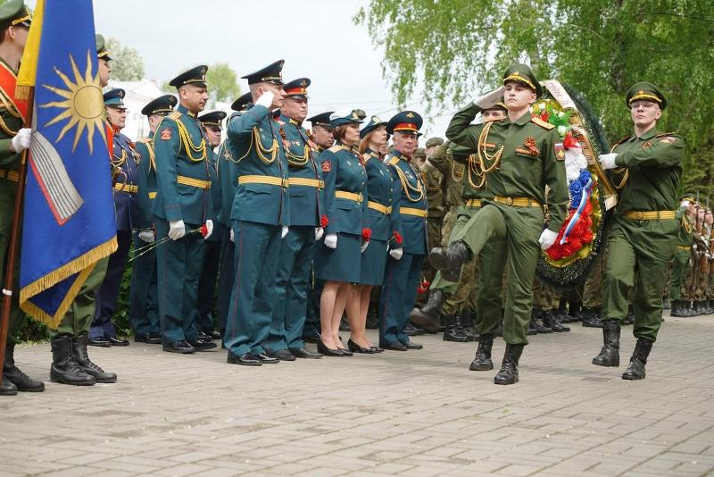 Курсанты Военного учебного центра при ВГУ исполнили знаменую композицию «День Победы». После выступления присутствующие возложили венок и цветы к Памятному знаку сотрудникам и студентам ВГУ, павшим в боях за Родину в 1941–1945 годах. В завершение мероприятия память погибших почтили минутой молчания.