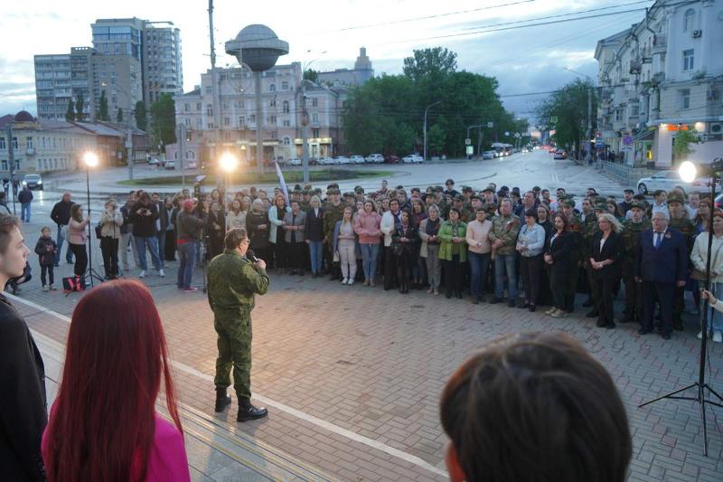Вечером 7 мая Главный корпус ВГУ наполнился пронзительными мелодиями: состоялся открытый концерт «Песни Победы». Вместе с хором FERMATA сотрудники и студенты ВГУ во главе с ректором вуза Дмитрием Ендовицким исполнили песни, посвящённые подвигу нашего народа.
