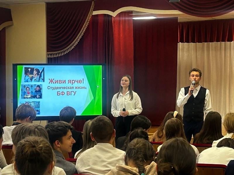 Участники мероприятия получили информацию о реализуемых БФ ВГУ программах магистратуры, бакалавриата и среднего профессионального образования (на базе 9 и 11 классов), особенностях образовательного процесса, вариантах организации досуга студентов, мерах социальной поддержки, перспективах трудоустройства выпускников.