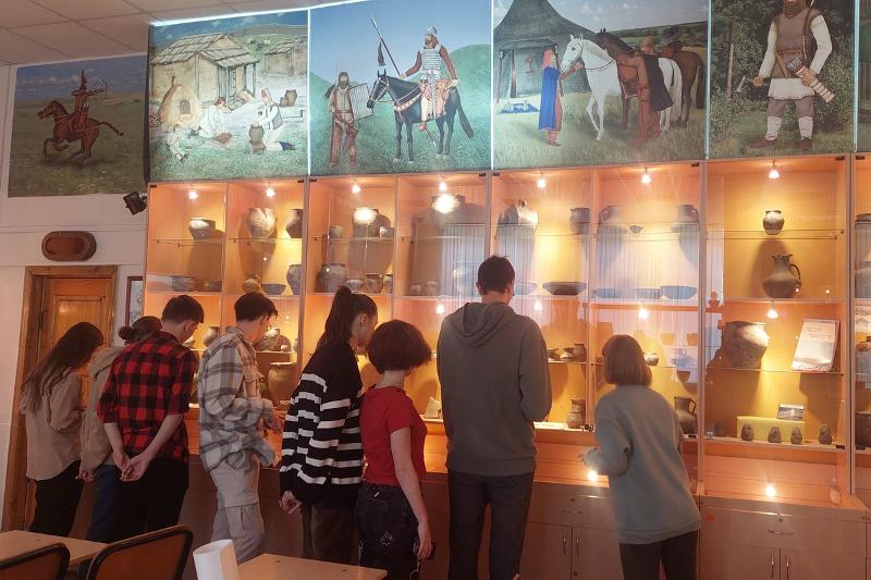 8 мая в рамках работы НСК «Краеведение» студенты 3 курса факультета географии, геоэкологии и туризма Воронежского государственного университета с руководителем НСК доцентом кафедры физической географии и оптимизации ландшафта Евгенией Жигулиной посетили археологический музей ВГУ. Здесь представлены экспонаты, относящиеся к верхнему палеолиту, эпохе бронзы, раннему железному веку и раннему средневековью.