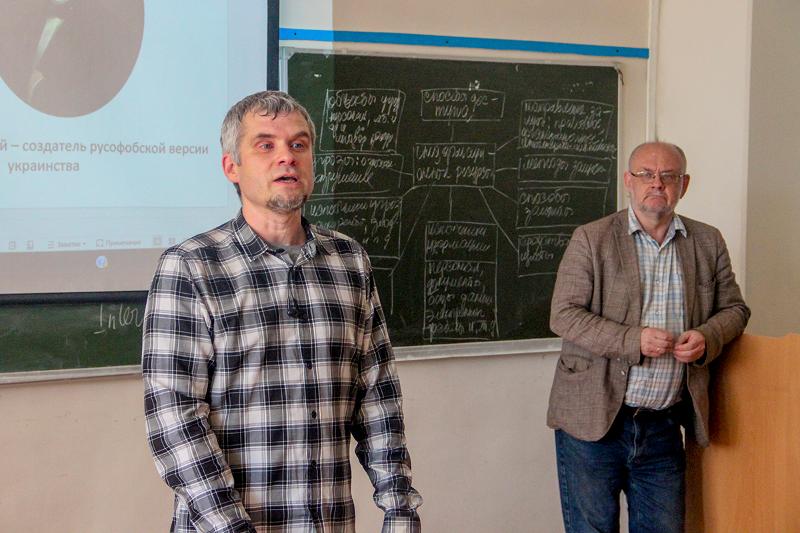 21 мая на историческом факультете ВГУ прошел круглый стол «Украинский вопрос в истории и современности». В качестве спикеров выступили доктор исторических наук Аркадий Минаков и лектор общества «Знание» Иванов Алексей.