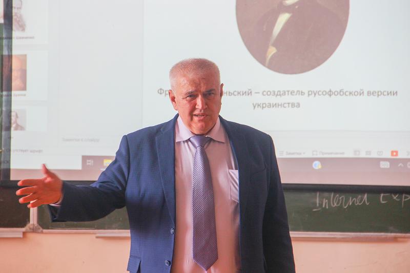– Одна из технологий, применяемых украинским режимом – фальсификация истории. Общность людей становится народом, когда есть представление о своих героях и антигероях. Только тогда можно говорить о возникновении национального самосознания. Если подменить историю, это будет уже другой народ, – объяснил в рамках лекции Алексей Иванов.