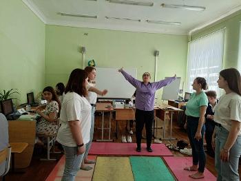 По заданию билета выпускники разработали уроки по предметам начальной школы или занятия с воспитанниками детского сада. На основе своих разработок выпускники сымитировали деятельность учителя или воспитателя. В качестве их подопечных выступили студенты предвыпускного курса. Они с энтузиазмом выполняли задания «учителей» и «воспитателей» ‒ рисовали натюрморты, сочиняли сказки, решали примеры и занимались физкультурой.