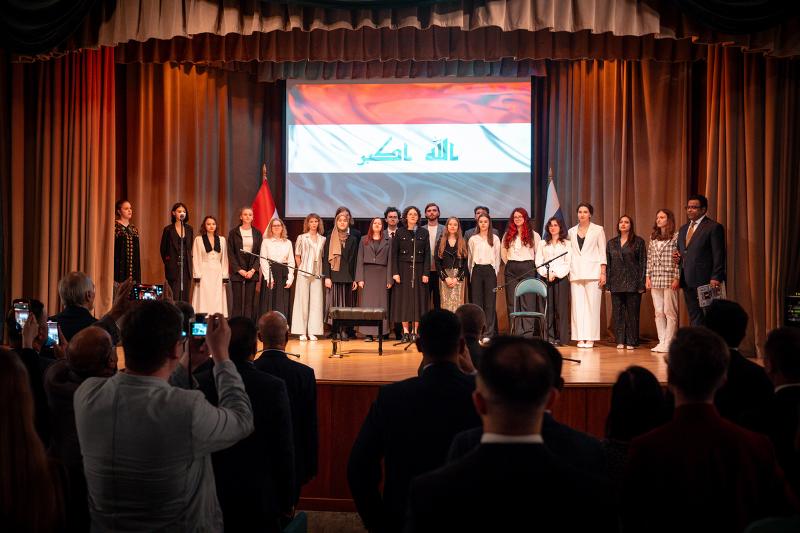 На открытии официальной части мероприятия прозвучали государственные гимны Республики Ирак и Российской Федерации, исполненные студентами ВГУ.