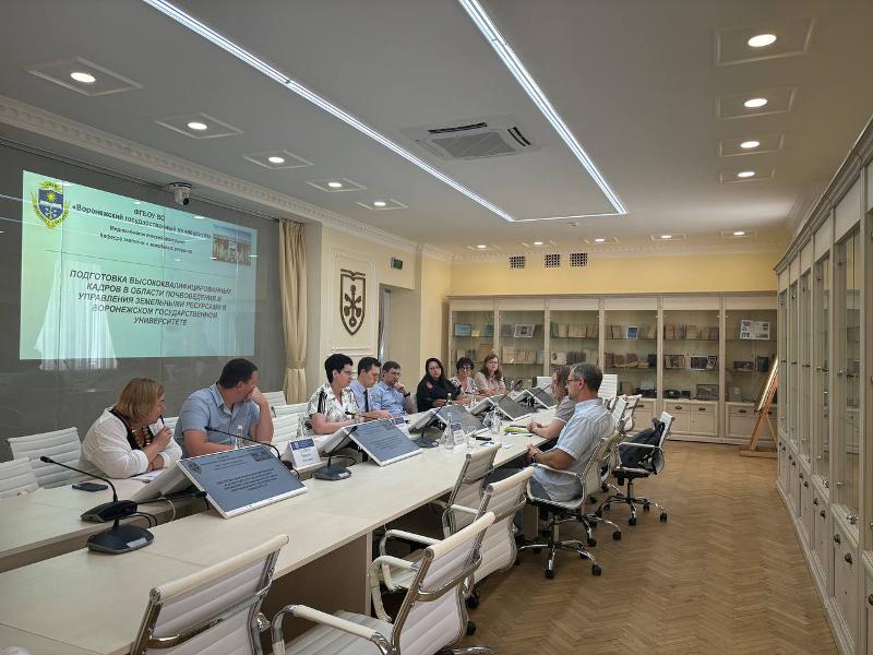 В начале встречи заведующая кафедрой экологии и земельных ресурсов ВГУ Татьяна Девятова рассказала о подготовке высококвалифицированных кадров в области почвоведения и управления земельными ресурсами в Воронежском госуниверситете. В частности, она представила историю воронежской школы почвоведения и подробно рассказала об основных научных направлениях в этой области, которые сегодня реализуются в ВГУ.