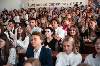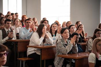 Первокурсников математического факультета поздравил проректор по науке, инновациям и цифровизации, профессор кафедры математического моделирования Дмитрий Костин: