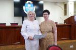 Врио ректора ВГУ, первый проректор – проректор по учебной работе Елена Евгеньевна Чупандина вручила аттестаты профессоров сотрудникам университета: Людмиле Михайловне Кольцовой, Любови Васильевне Ковтуненко, Григорию Константиновичу Ускову, Юлии Валентиновне Бондаренко.