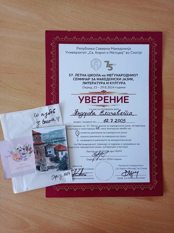 – И во время учёбы, и в период проживания в Конгресс Центре я получила незабываемые эмоции и мощный культурный заряд. У нас были познавательные лекции, связанные с развитием македонского языка, литературы и культуры, экскурсии по религиозным местам (монастырь Святого Наума, собор Святой Софии, церковь Святого Канео и др.), поэтические и музыкальные вечера. И это действительно откликалось в сердцах тех, кто неравнодушен к культуре и истории, – рассказала студентка.