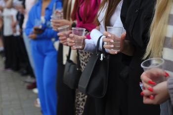 Участникам митинга традиционно раздали стаканы с водой. Это один из символов трагедии: во время захвата школы преступники не давали заложникам пить в течение трёх дней.