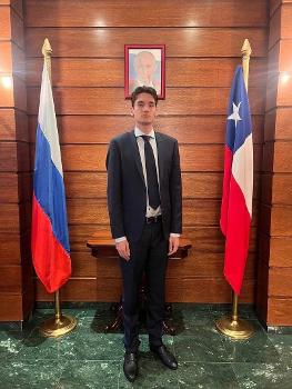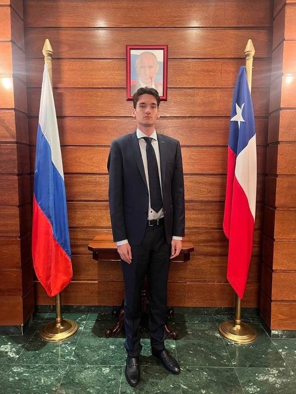 Студент 4-го курса факультета международных отношений ВГУ Никита Глухов с 8 по 29 августа прошёл стажировку в Посольстве Российской Федерации в Чили. В ходе стажировки он ознакомился с основными направлениями работы российского загранучреждения.