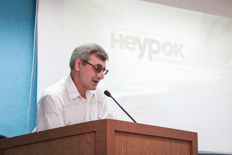 С вступительным словом выступил заместитель декана по учебной работе, секретарь Воронежского отделения РГО Вадим Свиридов. Он подчеркнул значимость географии в современном мире.