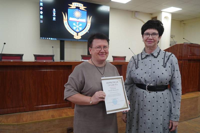 Нагрудный знак «Ветеран» Министерства науки и высшего образования был присвоен профессору кафедры математического обеспечения ЭВМ Ирине Астаховой, а почётным звание «Почётный работник сферы образования Российской Федерации» стал обладать профессор кафедры системного анализа и управления Владимир Задорожний.