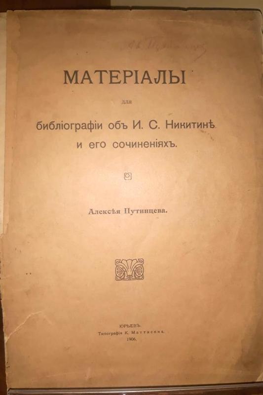 Несомненный интерес для изучения творчества поэта представляют «Материалы для библиографии об И.С. Никитине и его сочинениях» – это книга Алексея Путинцева, увидевшая свет в 1906 году в Юрьеве в типографии Маттисена. В Отделе редких книг хранится также сборник стихов поэта, изданный во время Великой Отечественной войны. Это «Стихотворения» со вступительной статьей Ивана Никаноровича Розанова (Москва, 1944).