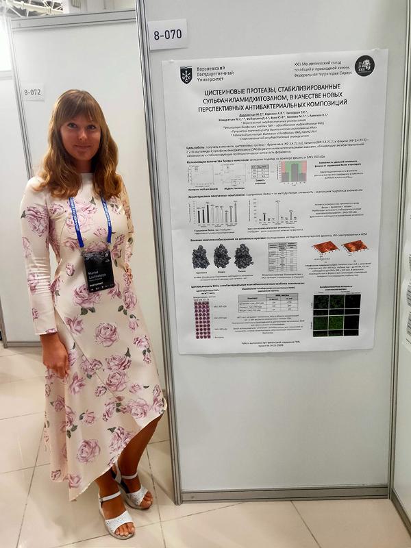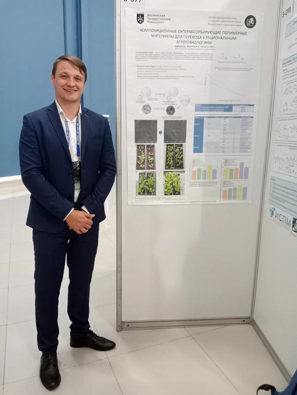 Доцент кафедры органической химии, кандидат химических наук Надежда Владимировна Столповская и руководитель продуктового развития пластиков и органического синтеза СИБУР Евгений Александрович Степанов выступили на секции «Полимеры и полимерные материалы». Учёные представили доклад по результатам совместной научно-исследовательской работы ВГУ и компании СИБУР «Гидрированные бутадиен-стирольные полимеры, как эффективные присадки в моторные масла». На этой же секции в рамках постерной сессии старший научный сотрудник кафедры биофизики и биотехнологии медико-биологического факультета, кандидат химических наук Мария Сергеевна Лавлинская выступила с докладом «Цистеиновые протеазы, стабилизированные сульфаниламидхитозаном, в качестве новых перспективных антибактериальных композиций». А старший научный сотрудник, доцент кафедры высокомолекулярных соединений и коллоидной химии химического факультета, кандидат биологических наук Андрей Викторович Сорокин представил доклад «Композиционные суперабсорбирующие полимерные материалы для перехода к рациональным агротехнологиям».