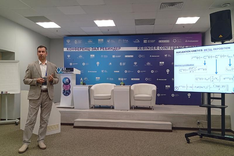 Учёные кафедры физической химии химического факультета ВГУ приняли участие в работе 11-го Международного Фрумкинского симпозиума по электрохимии. Заведующий кафедрой, доктор химических наук Олег Александрович Козадеров в качестве сопредседателя провёл заседание секции «Общие и теоретические аспекты электрохимии», а также выступил на этой секции с докладом «Кинетика нуклеации и роста новой фазы при катодном соосаждении цинка и никеля из хлоридно-аммонийных электролитов». Доцент кафедры, доктор химических наук Ольга Анатольевна Козадерова представила доклад «Влияние рН на эффективность обессоливания раствора нитрата аммония при электродиализе» на секции «Электрохимия мембран». Доцент кафедры, кандидат химических наук Светлана Николаевна Грушевская выступила с докладом «Фотоэлектрохимия оксидов меди, анодно сформированных на латунях с различным фазовым составом» и представила постерный доклад «Определение электронных параметров оксида Ag(I) по данным импедансометрии сплавов системы» на секции «Электрохимическое материаловедение».