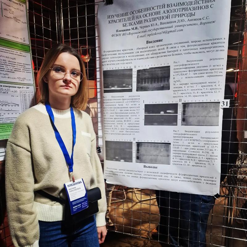 Сотрудники кафедры биофизики и биотехнологии: доктор биологических наук Сергей Сергеевич Антипов, доктор биологических наук Марина Геннадьевна Холявка, кандидат химических наук Мария Сергеевна Лавлинская, кандидат биологических наук Андрей Викторович Сорокин, аспирант Юлия Черных, студенты 3-го курса Марина Плешкова и Екатерина Евдокимова приняли участие в работе IV Всероссийской молодёжной конференции «ВДФМ–2024». Конференция прошла на базе Воронежского университета и была посвящена всестороннему обсуждению результатов исследования функциональных материалов и методов их диагностики.
