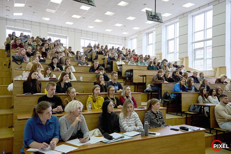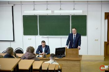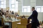 Виктор Алексеевич Сливкин, специалист Координационного центра по направлению «Открытый диалог», выступил перед студентами с приветственным словом:
