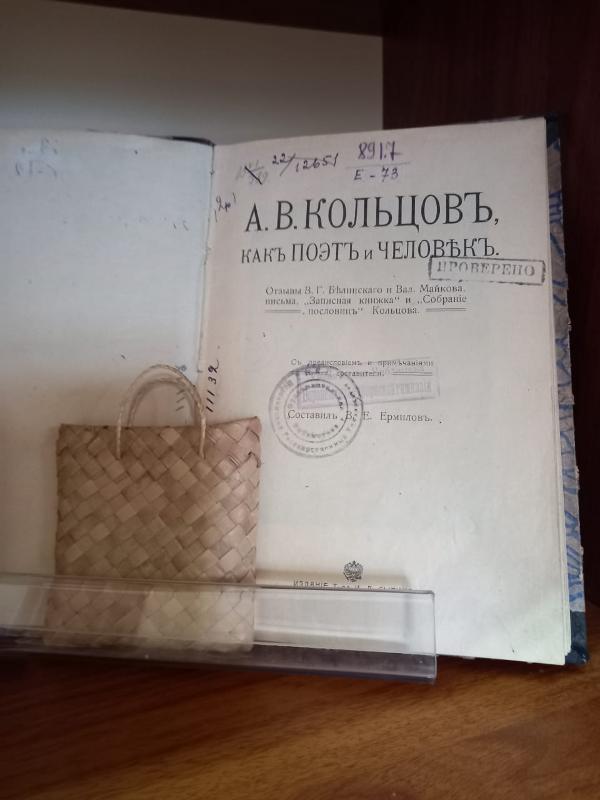 Много времени изучению жизни и творчества замечательных воронежских поэтов Алексея Васильевича Кольцова и Ивана Саввича Никитина посвятил Сергей Никанорович Прядкин, русский филолог, педагог-методист, редактор первого русского научного языковедческого журнала «Филологические записки». На выставке представлена его книга «Очерк поэзии А.В. Кольцова».