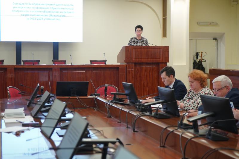 По первому вопросу – «О результатах образовательной деятельности по основным образовательным программам высшего образования и среднего профессионального образования за 2023–2024 учебный год. Основные задачи университета в области образовательной деятельности в 2024–2025 учебном году» – выступила врио ректора ВГУ Елена Евгеньевна Чупандина. В своём выступлении она подробно осветила ключевые достижения и проблемы образовательной деятельности университета, основываясь на информационно-аналитических данных. Особое внимание Елена Евгеньевна уделила результатам научно-методической работы, которая играет важную роль в повышении качества образовательного процесса.