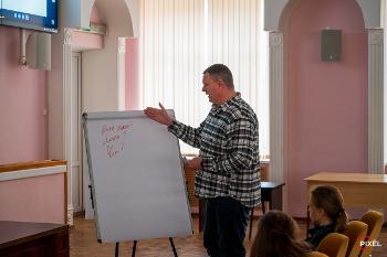 На бизнес-квесте «Олимпик» сертифицированный командный коуч Сбера Жанна Трайбер и корпоративный тренер Сбера Анастасия Проняева рассказали школьникам об основах бизнеса и провели командную игру.