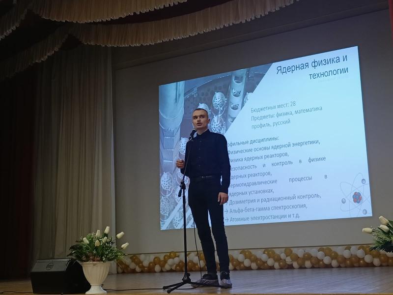 Особенно тепло школьники восприняли выступление недавних абитуриентов, ныне студентов – Анастасии Хопёрской, магистрантки кафедры социально-экономической географии и регионоведения и Ивана Печникова, студента 3-го курса направления «Ядерная физика и технологии».