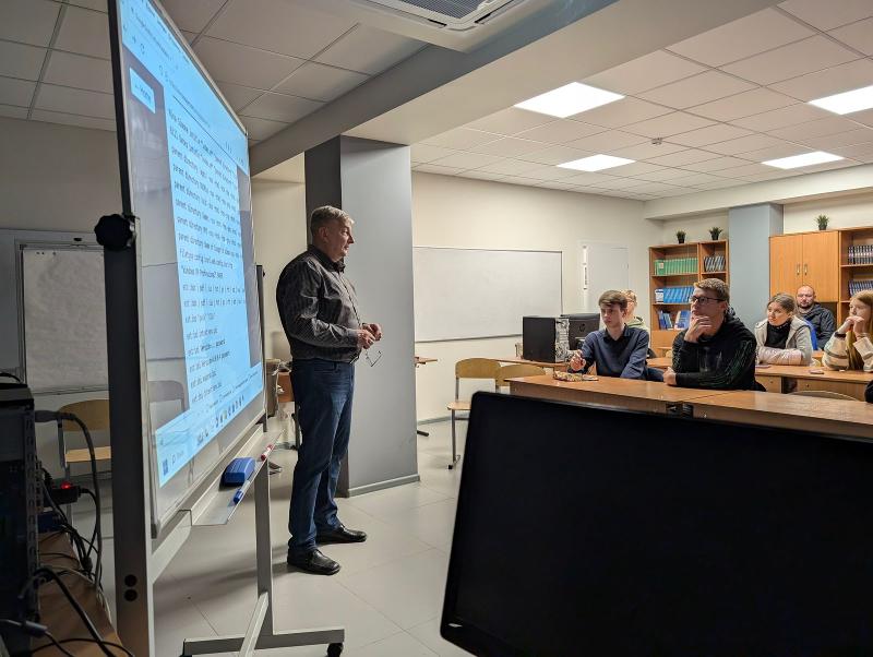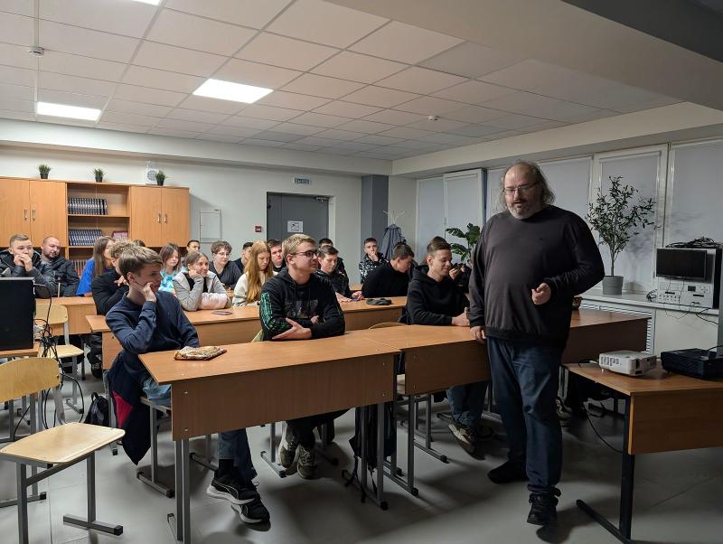 Перед школьниками выступил заведующий кафедрой кибербезопасности информационных систем факультета прикладной математики, информатики и механики Сергей Леонидович Кенин. Он рассказал о специальности «Компьютерная безопасность», реализуемой на факультете, и её особенностях.