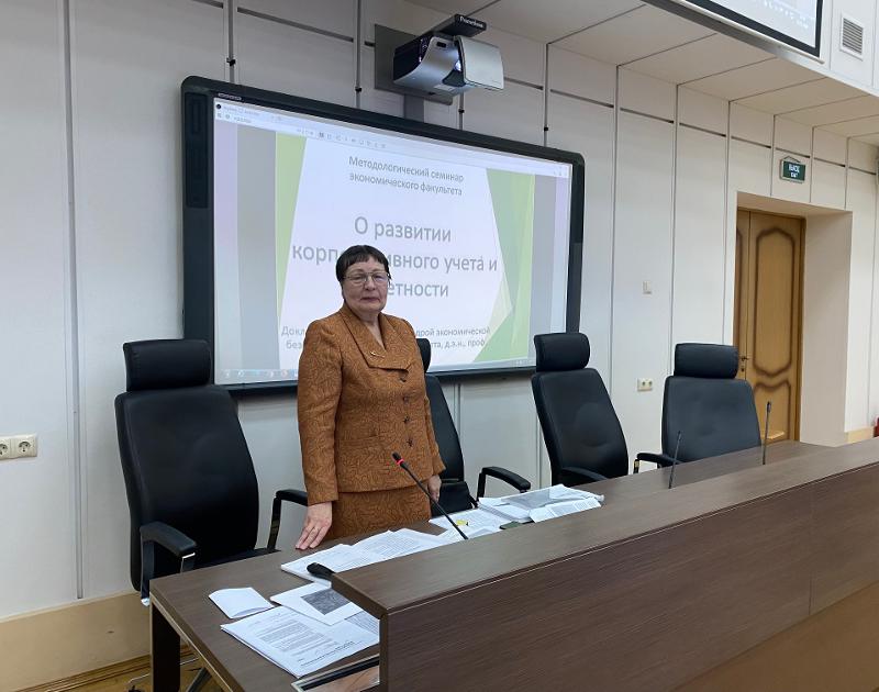 14 ноября на экономическом факультете Воронежского государственного университета состоялся методологический семинар. Спикером выступила доктор экономических наук, профессор, заведующий кафедрой экономической безопасности и бухгалтерского учета ВГУ Наталья Глебовна Сапожникова по вопросу «О развитии корпоративного учёта и отчётности». В своём выступлении она осветила ключевые аспекты, касающиеся современных тенденций и изменений в сфере корпоративного учёта, а также важность прозрачности и надёжности финансовой отчётности для бизнеса.
