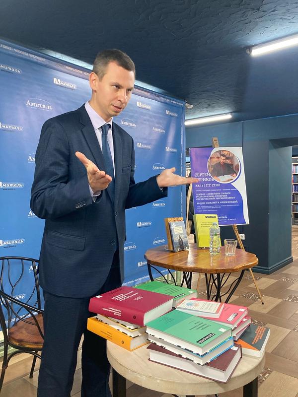 22 ноября в России отметили День словарей и энциклопедий. К этому дню была приурочена очередная открытая лекция заведующего кафедрой русского языка ВГУ Сергея Александровича Чурикова на тему «Новейшие словари русского языка и будущее отечественной лексикографии». Мероприятие состоялось в книжном магазине «Амиталь» в рамках проекта «Большой университет – большому городу».