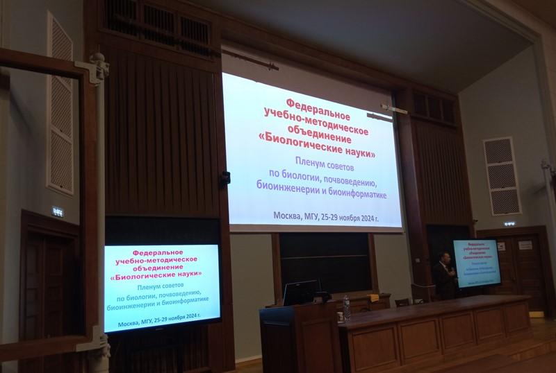 25–29 ноября начальник управления образовательной политики Анастасия Владимировна Семенихина и заместитель декана медико-биологического факультета по учебной работе Ольга Анатольевна Сафонова приняли участие в работе Пленума Советов по биологии, почвоведению, биоинженерии и биоинформатике «Высшее биологическое образование в условиях модернизации вузовской подготовки в России», организованного Федеральным УМО «Биологические науки» на базе Московского государственного университета имени М.В. Ломоносова.