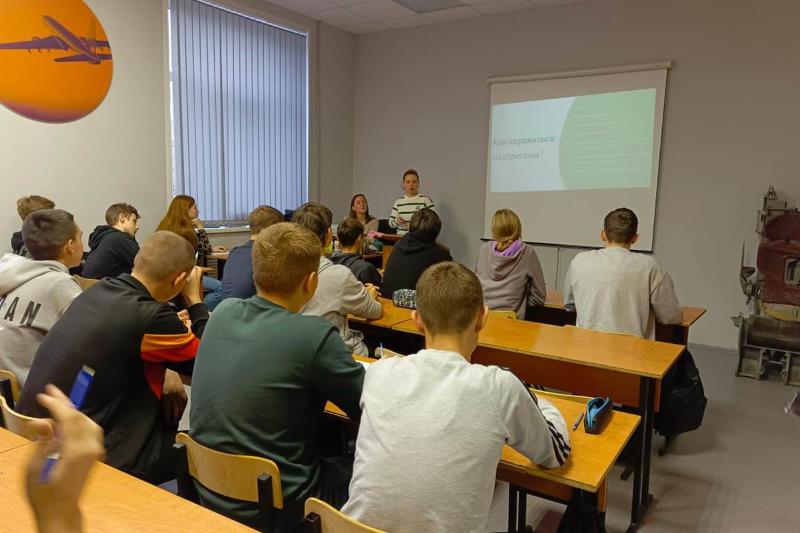 В ноябре студенты 4-го курса в рамках Недели психологии, реализуемой в образовательных учреждениях Воронежа, провели занятия по темам эмоционального развития личности, стресса, проявлений агрессии с обучающимися Воронежского авиационного техникума имени В.П. Чкалова. Студенты рассказали теоретическую часть выбранных тем, а затем провели тренинговые и практические психологические упражнения на закрепление материалы и рефлексию занятия.