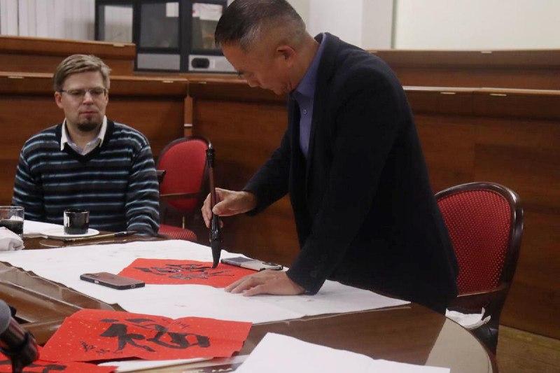 Во время визита китайской делегации в рамках реализации договорённости об академическом обмене преподавателями профессор Ци Мин провёл мастер-класс по китайской письменности и обучению студентов ВГУ искусству каллиграфии.