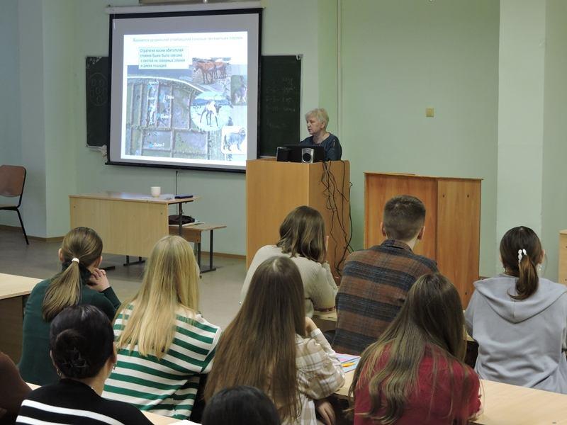 27 ноября исторический факультет принимал главного научного сотрудника Курчатовского краеведческого музея, кандидата исторических наук Наталью Борисовну Ахметгалееву. Она выступила перед студентами с открытой лекцией на тему «От охотников на мамонтов до древнейших лучников Европы», посвящённой эпохе верхнего палеолита в Курском Посеймье. На базе Археологического музея ВГУ для участников студенческого археологического кружка спикер провела мастер-класс по искусству каменного века «Солнечный круговорот». Символично, что в процессе занятия ребята изготовили своими руками амулет по образу курчатовского «солнечного коня», возраст которого около 20 тыс. лет.