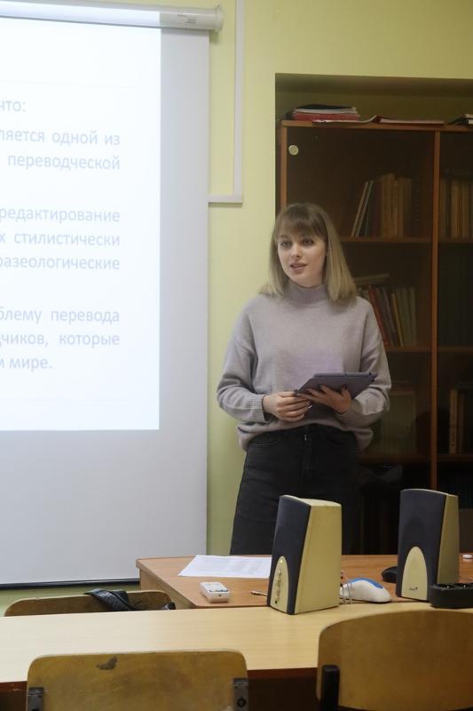 Секции работали в смешанном формате: часть докладчиков находились в университетских аудиториях, другие выступали по видеосвязи. В результате состоялся интересный обмен научными идеями: студенты не только познакомились с исследованиями своих коллег из разных вузов России и зарубежья, но и получили ценные комментарии от руководителей секций – экспертов в своих областях, представителей основных научных направлений, развиваемых на факультете. Кроме традиционных докладов, был опробован и новый формат работы – проект. Так, в рамках проекта «Франкоязычное художественное пространство в аспекте перевода» выступили одиннадцать студентов французского отделения факультета РГФ, подготовившие сообщения под руководством доктора филологических наук, профессора Натальи Александровны Фененко: