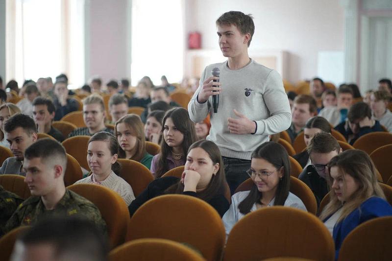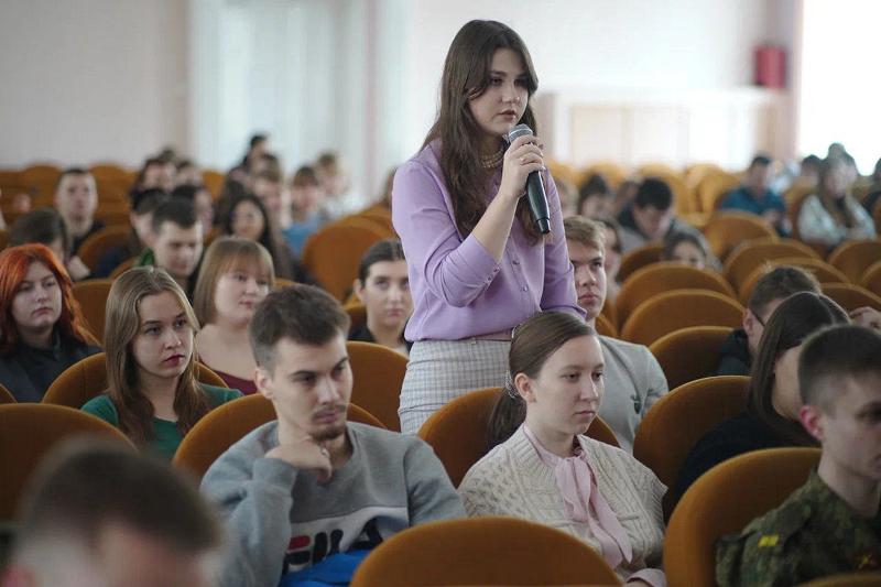Встреча с представителями студенческой молодёжи прошла в формате открытого диалога. «Важно уметь принимать решение и нести за него ответственность», – подчеркнул Юрий Николаевич, общаясь с ребятами.