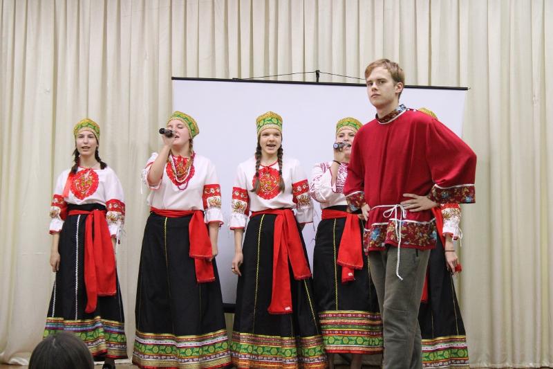 Студенты передали атмосферу русской масленицы, рассказали об обрядах и традициях празднования Рождества и дня Ивана Купалы, представили старинный свадебный обряд, сопровождавшийся известной русской песней «Вьюн над водой».