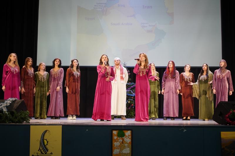 Иностранные студенты ИМО представили флаги своих государств в почётном шествии. Ребята исполнили лирические песни на разных языках мира. Зрители увидели национальный танец Шри-Ланки, зажигательную лезгинку, услышали прочтение стихотворений Ближнего Востока.