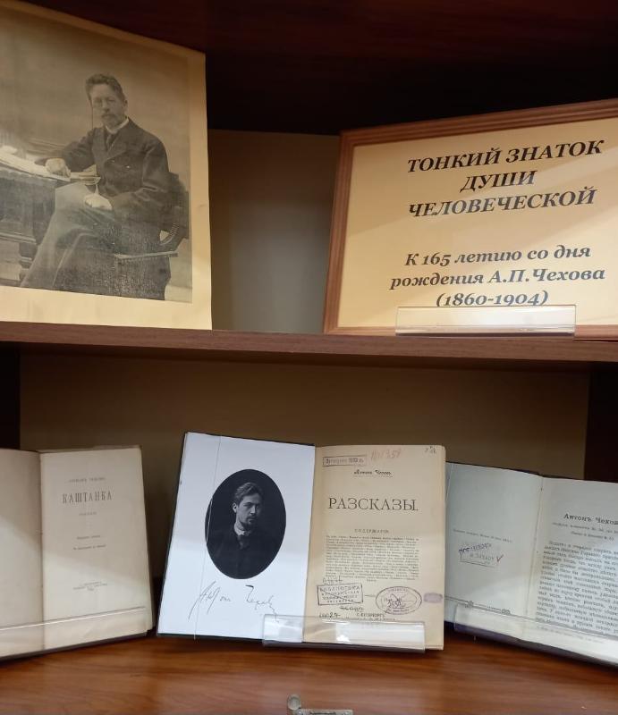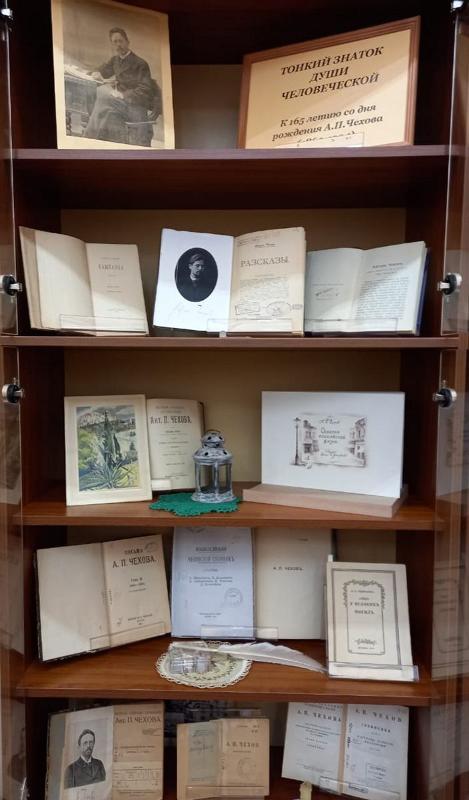 20 января в Отделе редких книг Воронежского государственного университета открылась выставка, посвященная 165-летию со дня рождения великого русского писателя Антона Павловича Чехова (1860-1904). Вниманию читателей предлагаются прижизненные и более поздние издания автора, а также книги о жизни и творчестве писателя.